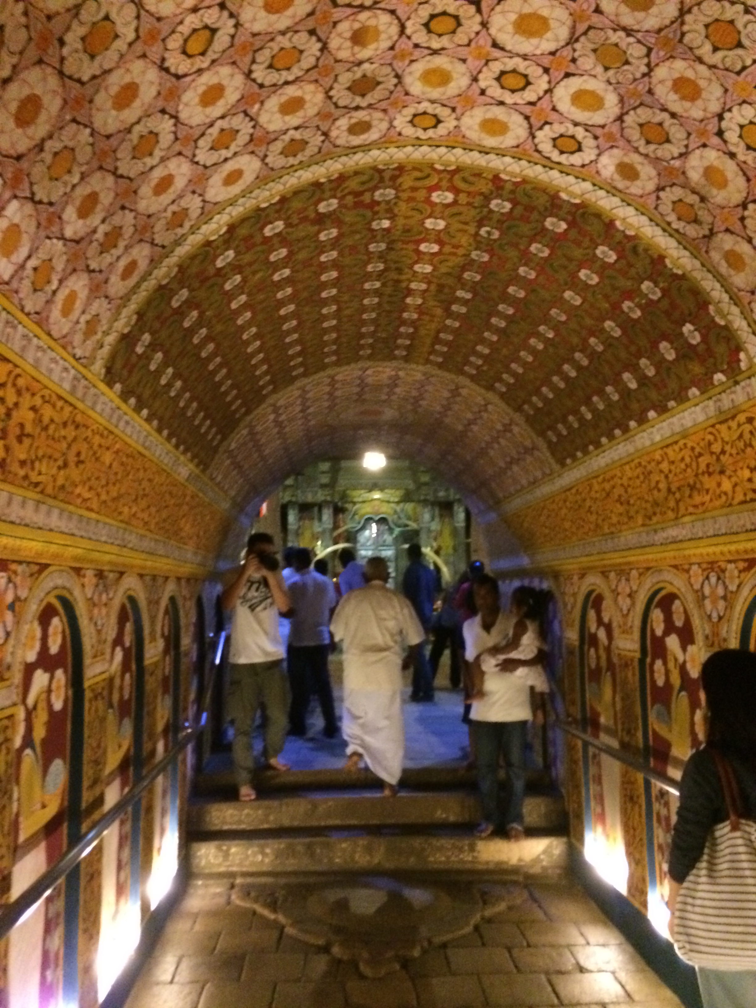 The temple in Kandy sees several visitors who come to pray for good health, happiness, money or other things one would want in life! The temple architecture in itself is rather assembled with a stupa, the pitched roof, a flat slab all merged into one. But the temple takes immense pride in its intricate detailing. The flooring finishes for example flow beautifully like carpets out of the stairways upto the temple. The main entrance is canvas to excellent Sri Lankan art on its roof. The shocking myriad of colors are placed with mighty aplomb across the ceiling.